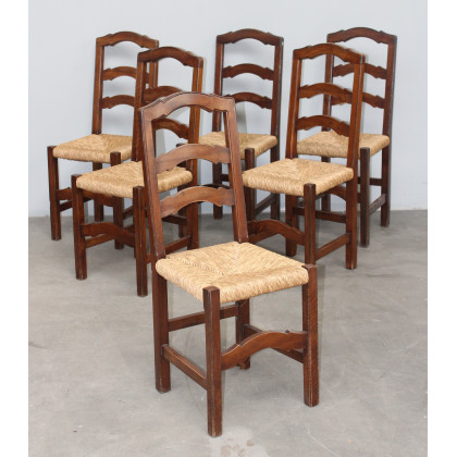 Gruppo di sei sedie impagliate con schienale a giorno (difetti)