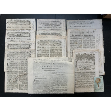 [AEROSTATICA] - Una serie di documenti sui primi voli tra cui alcuni numeri del Corriere Milanese, la Gazzetta Universale e delle Notizie Storico-Politiche con passaggi che riguardano l'argomento