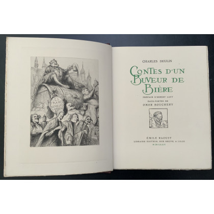 [ILLUSTRATI FRANCESI] Lotto composto da due celebri illustrati francesi: BOUCHERY Omer; DEULIN Charles. Contes d’un Buveur de Bière. Parigi: Emile Raoust, 1934. 4to grande, bella legatura in pelle con titolo e decori in oro al dorso entro custodia. [E:] CARLEGLE Charles Emile; LOUYS Pierre. Les adventures du Roi Pausole. Parigi: Le livre du bibliophile, G. & R. Briffaut, 1924. 4to, legatura in mezza pelle marrone con titolo in oro al dorso e piatti marmorizzati.