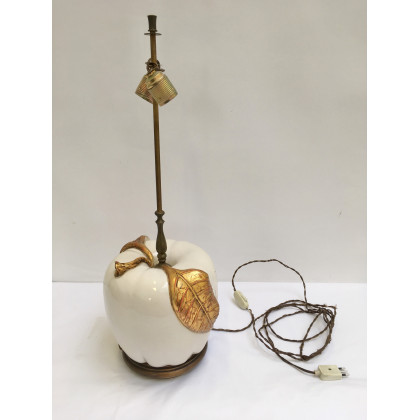 Lampada da tavolo in ceramica bianca a forma di mela con foglie dorate (h. cm 25) (difetti)