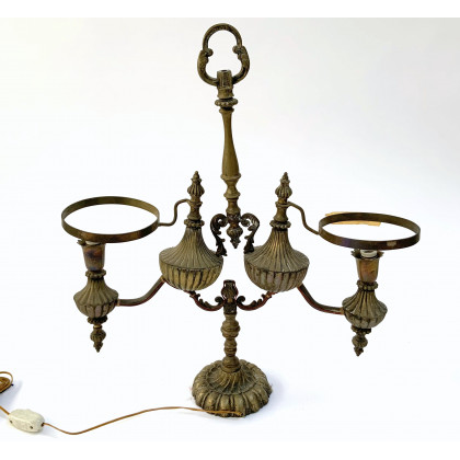 Lampada da tavolo a due luci in metallo con struttura per paralumi regolabile (h cm 52) (difetti e mancanze)
