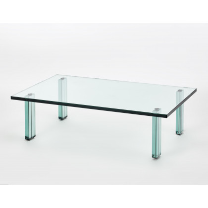 Living room table of the series "Teso". Produced by Fontana Arte, Milan, 1985. Very thick crystal, metal tie rods. Production mark on the top. (120x34.5x75 cm.) (slight defects) Literature G. Gramigna, Repertorio del design italiano 1950-2000 per l'arredamento domestico, Allemandi, Torino 2003, vol. 2, p. 352