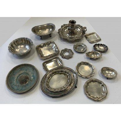 Cartone contenente numerosi oggetti diversi in argento (g 1300) (difetti)