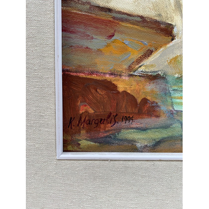 "Paesaggio", olio su tela, firmato e datato 1999 in basso a sinistra (cm 26x33) in cornice