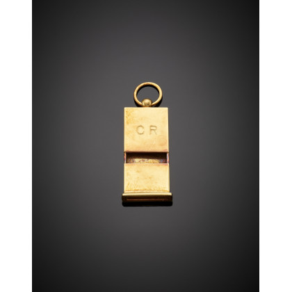 Yellow gold pendant whistle with "CR" inscribed, g 13.81 circa, length cm 4.20 circa. Marked 999 MI.