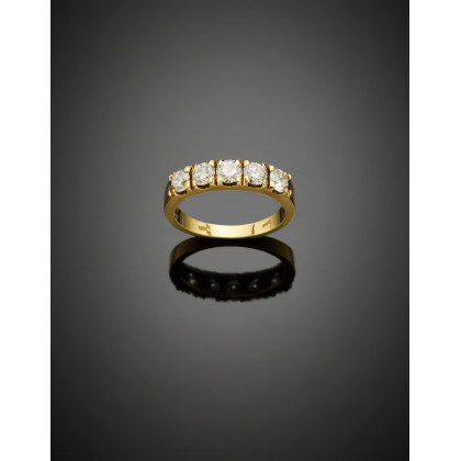 Five round diamond yellow gold ring in all ct. 1.35 circa, g 5.49 circa size 20/60. Marked 1519 AL.