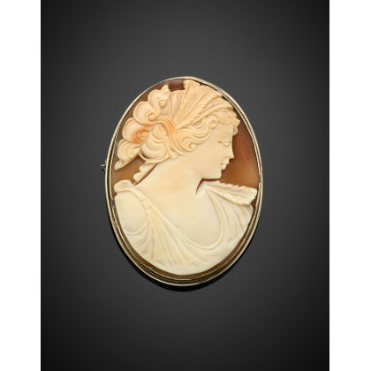Shell cameo silver brooch/pendant, g 15.20 circa, length cm 6.50 circa. (defects and losses)
