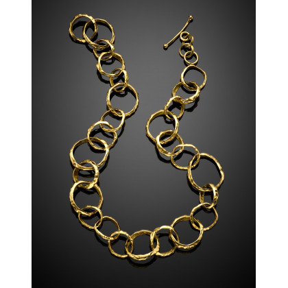 Yellow wrought and drilled gold hoop necklace, g 64.83 circa, length cm 51.30 circa. With pouch