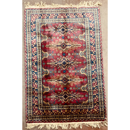 Tappeto caucasico moderno. Decoro geometrico su fondo ciclamino (cm 182x120) (difetti)