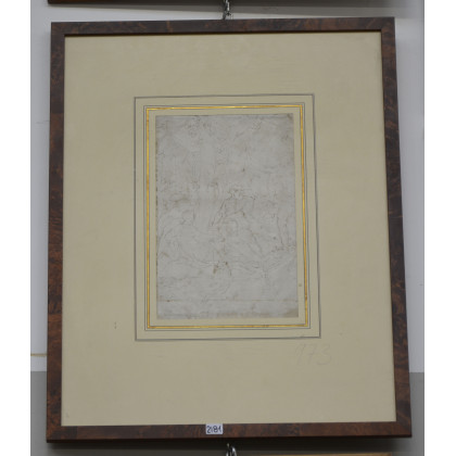 Maestro francese della seconda metà del XVII secolo "Figure mitologiche in un paesaggio" disegno a china (cm 29x19) In cornice