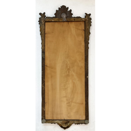 Specchiera in legno intagliato e dorato a mecca con cimasa traforata a volute rocaille, Napoli, fine del secolo XVIII (cm 77x33) (difetti e restauri)