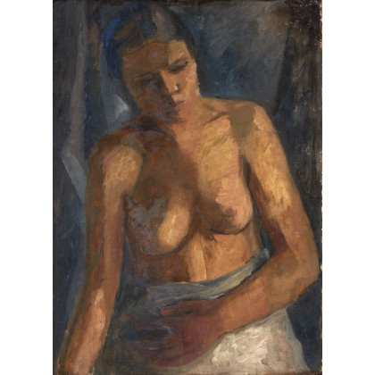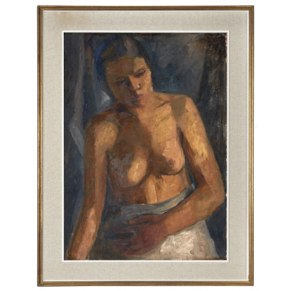 "La giavanese" olio su cartone (cm 68,5x49,5) al retro: studio per "Nudo" ad olio in cornice (difetti)