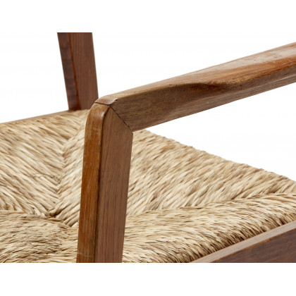 Armchair with ash frame and straw seat. Italy, early '50s. (61x80x52 cm.) (slight defects) Accompanied by expertise from the Gio Ponti Archives