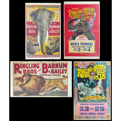 Lotto composto da quattro manifesti d'epoca su carta a soggetto circense (cm max 93x60) (lievi difetti)