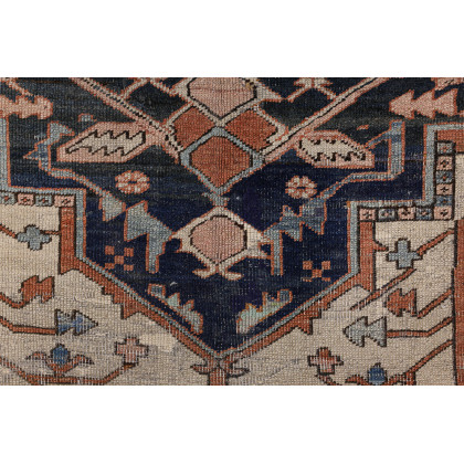 *Tappeto Heritz, Persia, secolo XX. Decoro con grande medaglione su fondo bianco (cm 350x280) (gravi difetti e restauri)