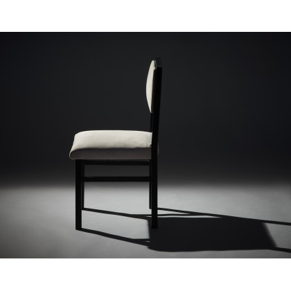 Pair of rationalist chairs in black lacquered solid wood with padded seat and backrest upholstered in white Alcantara. Italy, 1930ca. (slight defects) Provenance Private collection, Milan Literature Per arredi simili: L'arte nella casa, "Domus", numero speciale dedicato al mobile moderno in Italia, Natale 1929, p. 103; II mostra autunnale dell'ambiente moderno, Galleria Il Milione, Milano, 1932, opuscolo; Una mostra a Milano, in "Casabella", n 57, settembre 1932, pp. 25-29; Luigi Figini, Gino Pollini. Opera Completa, a cura di V. Gregotti, G. Marzari, Electa, Milano 2002, p. 267, Luigi Figini e Gino Pollini Architetti, a cura di V. Savi, Electa, Milano 1980, p. 24;