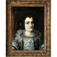854Scuola del sec XVII "Ritratto femminile" frammento ad olio…Estimate € 220 - 250