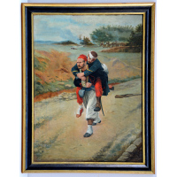 3041Firma indecifrata, "Il salvataggio del soldato", olio su cartone…Estimate € 150 - 200Sold for € 100