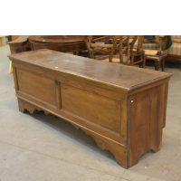 4164Antica cassapanca in noce con fronte riquadrata e piedi…Estimate € 60 - 80
