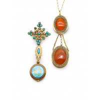 47Ruby, seed pearl, turquoise and yellow 12K gold pendant…Estimate € 350 - 380Sold for € 500