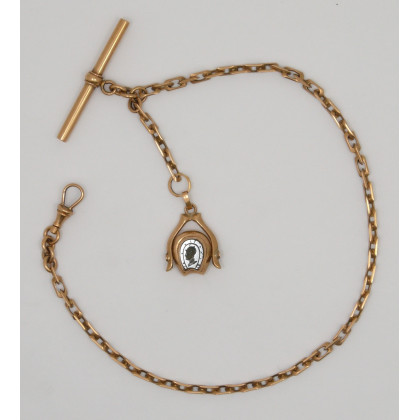 Antica catena da orologio in oro rosÞ con pendente a ferro di cavallo con pietra nera incisa .1880 ca. (gr 16,70 ca)