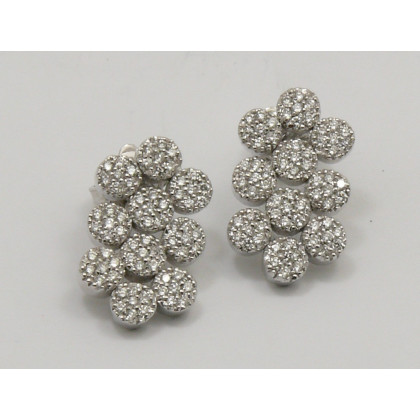 Paio di orecchini pendenti in oro bianco a maglia snodata formata da elementi rotondi in pavÞ di diamanti taglio brillante di ct 0.70 ca. (gr 8,00 ca)