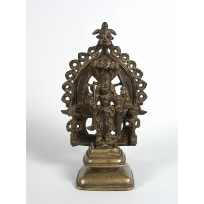 Arte indiana sec. XVIII/XIX. Figura di shiva virabhadra in bronzo formata da tre elementi (h cm 19x8)