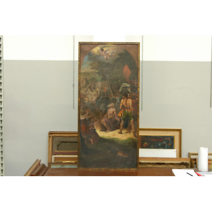 Scuola del sec. XVIII "Scena storica con centurioni e angelo" Olio su tela (cm 124x57)