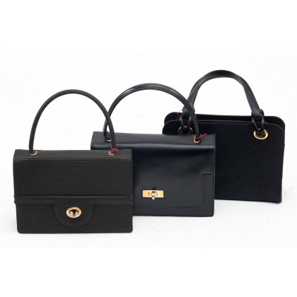 Albanese: lotto di tre borsette a braccio in tessuto e pelle nero