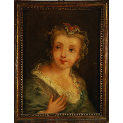 Scuola del sec. XVIII "Ritratto di fanciulla" olio su carta riportata su tavola (cm 31x23,5). In cornice antica
