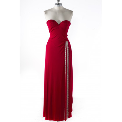 Loris Azzaro: abito lungo da sera in jersey color rosso con maniche staccate, decorato da frange in strass (difetti)