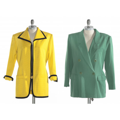 Max Mara: lotto di due giacche in cotone cannetè color giallo, chiusura a cerniera con finale in metallo dorato e logato, profili color nero, ed una giacca in misto lana color verde acqua doppiopetto, tg 40