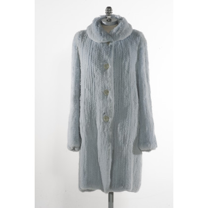 Pelliccia in castoro tinto color azzurro, lavorazione a tricot, chiusura a quattro bottoni, collo rotondo, (difetti)