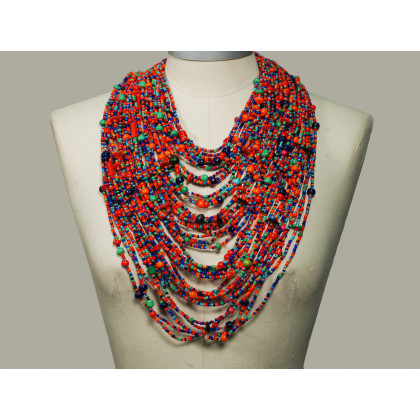 Grande collana multifilo degradè in paste vitree multicolori. Chiusura a bottone in metallo (Abacus Original)
