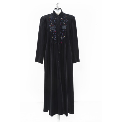 Giungle Jap: cappotto lungo in velluto di cotone nero con ricami floreali policromi sul fronte