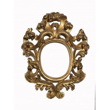Cornice in legno dorato ed intagliato a foglie d'acanto accartocciate con luce ovale . Fine sec. XVII (cm. 16x12) Carved and giltwood frame. Late 17th century