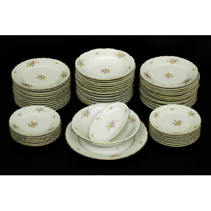Lotto di numerosi piatti in porcellana policroma decorato a fiorellini