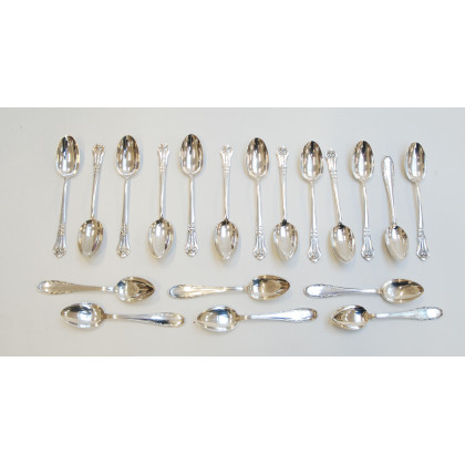 Lotto composto da dodici cucchiaini da caffè e altri sei con diverse decorazioni in argento (g 190c)