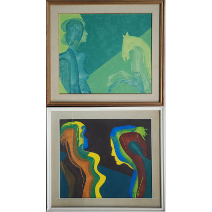 "Senza titolo" due dipinti ad olio su tela, misure diverse, in cornice