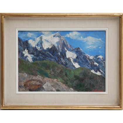 "Pomeriggio in Val Veny" olio su compensato (cm 25x34) Firmato in basso a destra e iscritto al retro, in cornice