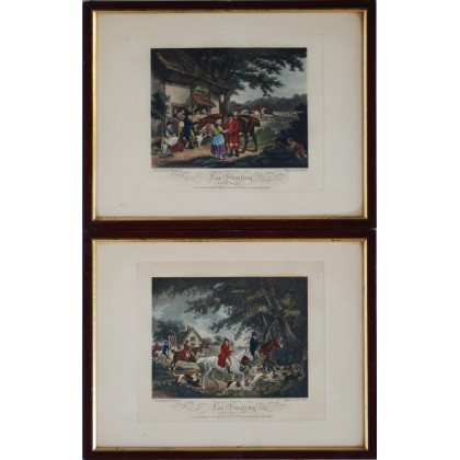 Coppia di stampe a soggetto di caccia alla volpe