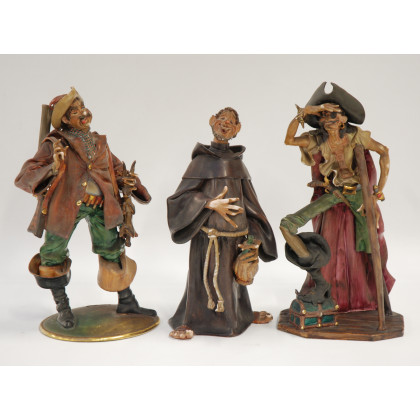 Lotto di tre sculture in ceramica raffiguranti caricature di personaggi (lievi difetti)