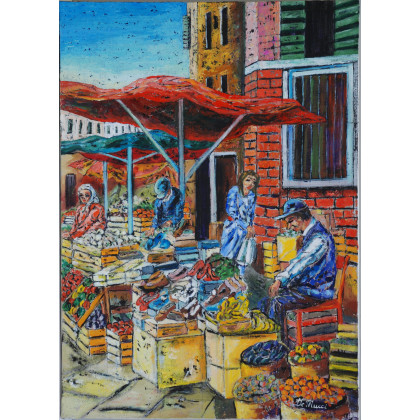"Mercato" Olio su tela (cm 50x70) firmato in basso a destra