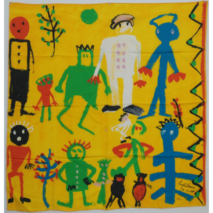 Da Ionesco. Foulard in seta Es. 87/900, datato 12-12-1988 (cm 86x82,5) (difetti)