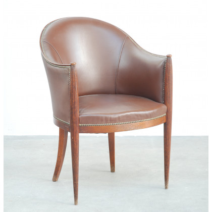 Poltroncina a pozzetto déco con sostegni anteriori scanalati a forma di ovali allungati, rivestimento in pelle