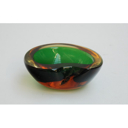 Manifattura di Murano. Portacenere anni '50 in vetro massiccio nei toni del verde e arancio (lievi difetti)