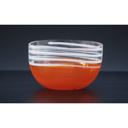 Manifattura di Murano, Carlo Moretti. Bicchiere in vetro lattimo e trasparente a fasce, marcato e datato