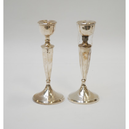 Coppia di candelieri in argento e una fiamma decoratio a nervature (gr 350 lordi ca) (difetti)