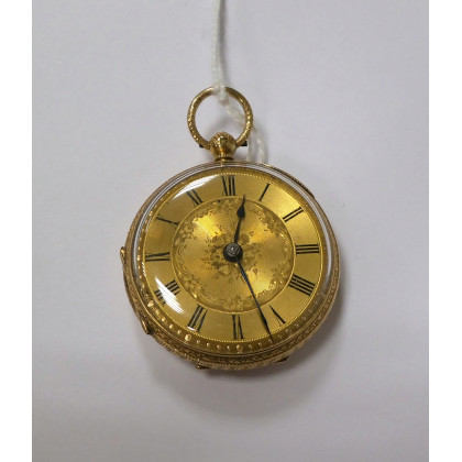 Orologio da tasca in oro giallo 18K. Movimento meccanico, carica a chiavetta, quadrante oro in 12 in numeri romani, finemente inciso. Cassa bulinata. Movimento anonimo inglese, di epoca vittoriana. Epoca: XIX secolo