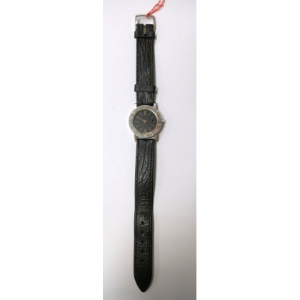 Orologio da polso da donna vintage Bulgari in acciaio, cinturino in pelle originale. Quadrante nero, solo tempo, movimento al quarzo. Circa 1990 (Difetti)